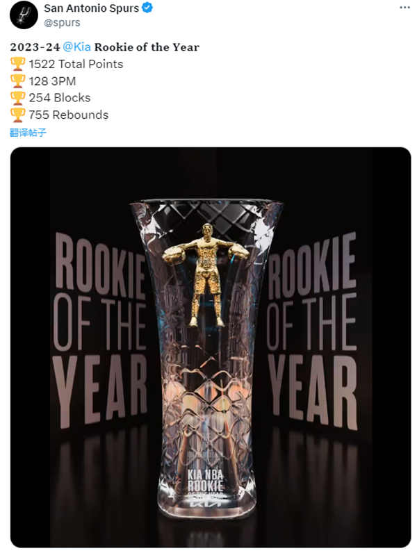 马刺官方第一时间祝贺文班亚马获大奖,美媒也纷纷晒海报送上祝贺。
