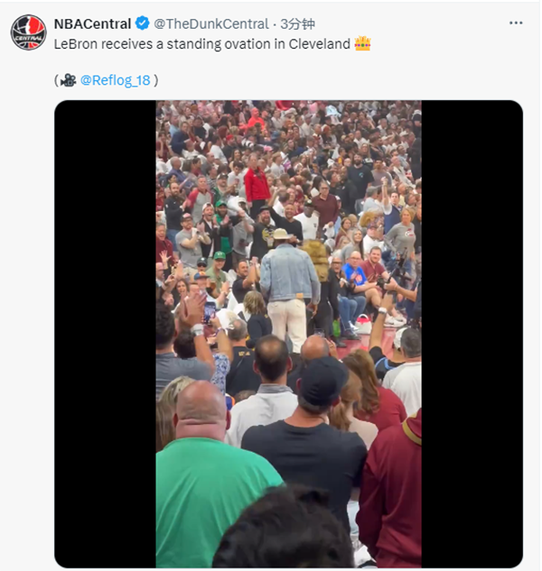 詹姆斯回家观看骑凯大战:现场球迷欢呼,老詹挥手致意