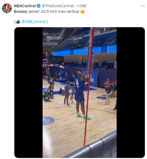 NBA选秀分析师Krysten Peek透露,布朗尼-詹姆斯助跑摸高的起跳高度为40.5英寸(约102.87厘米),在本届所有新秀中高居第四。