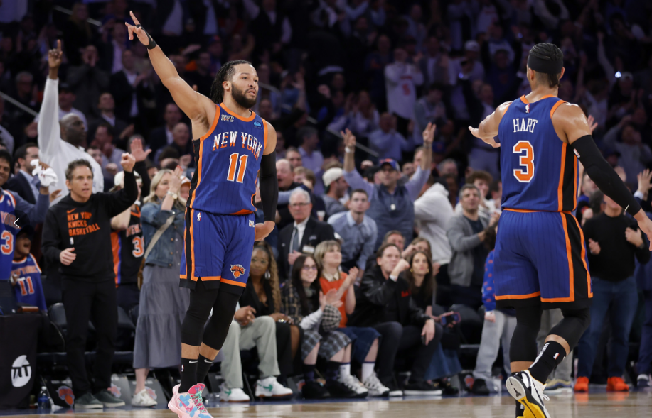 尼克斯和步行者打响天王山赛点争夺战,尼克斯9-16落后7分后,布伦森和哈特带队打出22-9的反击高潮,第一节38-32领先6分;布伦森首节打满12分钟,9投5中拿到10分2助攻,哈特也贡献10分,纽约主场气势如虹。