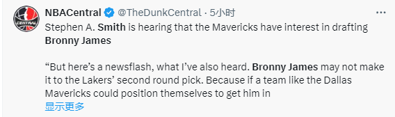 据悉,湖人倾向于交易首轮签追求第三球星,若湖人不愿用首轮签选中布朗尼,布朗尼可能被别队抢走;名嘴A-史密斯爆料独行侠有兴趣用次轮签选中布朗尼,史密斯表示:这里有一条新闻,我也听说了,布朗尼可能不会在第二轮被湖人选中,因为像独行侠这样的球队也想在次轮选中他,因为詹姆斯想和他儿子一起打比赛,若独行侠拥有欧文、东契奇和詹姆斯,他们将成为最受欢迎的球队。