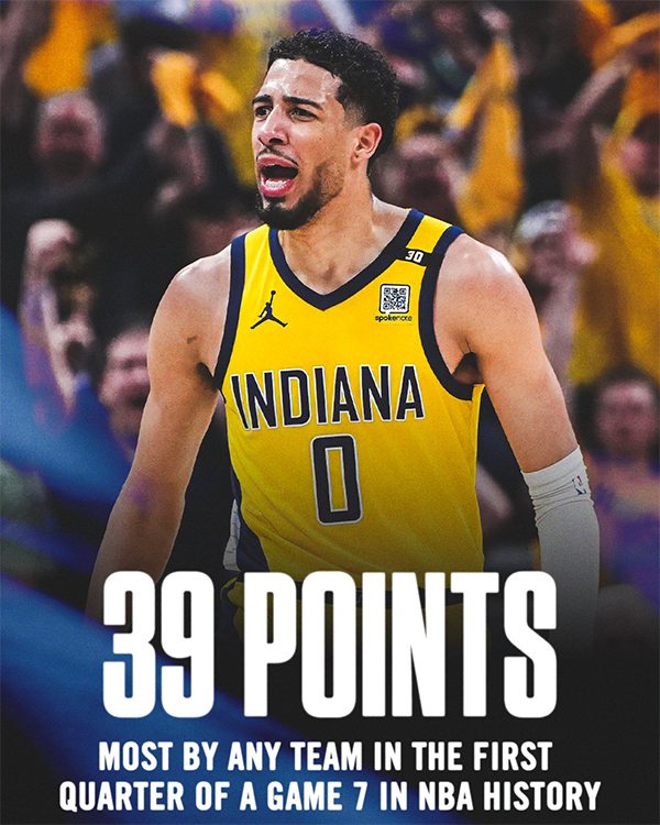 3、步行者抢七首节轰下39分创NBA抢七历史首节得分新高
