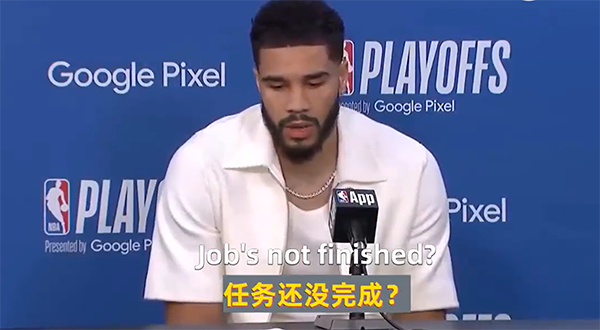 所以也期待接下来塔图姆的表现,偶像科比说出“Job's not finished。(任务没有完成)”这句话之后拿下NBA总决赛,希望塔图姆也可以重走前辈的道路。