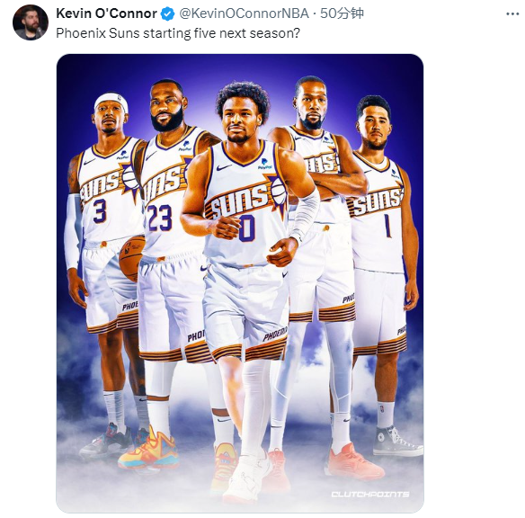 名记凯文-奥康纳转发詹杜联手的P照并发问:太阳新赛季的首发五虎确定了吗?