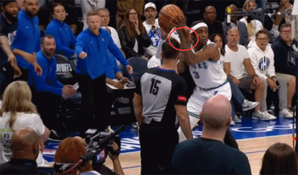 裁判:在比赛中,我们觉得这是一次正常的界外球。显然,独行侠教练对此提出了质疑,回放中心推翻了原来的判决(独行侠球员碰出界),因为球最后触碰到了麦克丹尼尔斯。但在赛后回看中,我们也确实看到欧文非法触碰了麦克丹尼尔斯的前臂,那是一个本该被判犯规的动作。