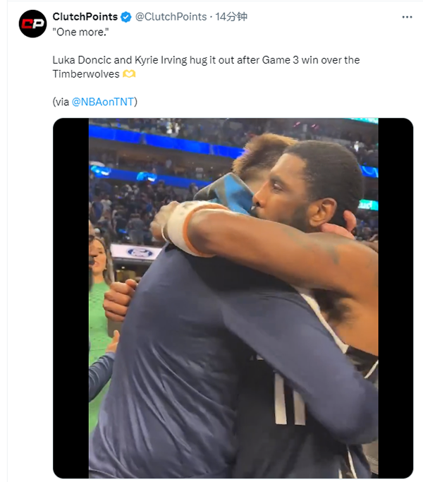 赛后东契奇和欧文拥抱并且耳语:再赢一场,再赢一场;接受采访时,当谈到欧文末节的出色发挥,东契奇表示:让人难以置信,这就是为啥有人叫他‘第四节先生’,对吧?他很出色,感觉第四节他拿了20分。欧文就是为大场面而生的,他为关键时刻而生,所以我们就是把球给他。