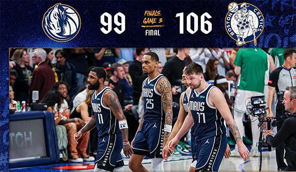 来源:直播车06-13 15:49直播车讯 NBA总决赛G3打得跌宕起伏,凯尔特人106-99击败独行侠,大比分3-0领先,斩获总冠军点,再赢一场就可以夺冠。独行侠开场9-2领先,一度领先凯尔特人两位数,在塔图姆的带领下,双方鏖战,凯尔特人上半场落后1分。第三节,杰伦布朗单节轰下15分,凯尔特人领先对手15分,并且在第四节初期顺利将差距拉大到21分。不过主场作战的独行侠不放弃,一波22-2缩小分差,东契奇6次犯规被罚下,凯尔特人顶住压力,布朗和怀特关键球,取得胜利,3-0领先的情况下,夺冠在即。