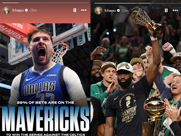 布朗在Ins Story中先是晒出总决赛前89%的赌注看好独行侠击败凯尔特人夺冠,然后晒出自己高举FMVP奖杯的画面,这是对外界质疑的最直接回击。