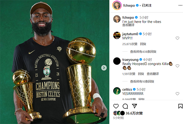 布朗夺冠社媒动态引关注 塔图姆送赞