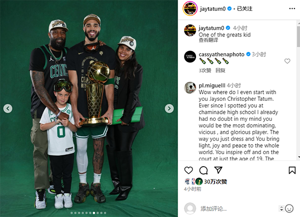 塔图姆还晒出其他的捧杯画面以及在更衣室庆祝的合影,写道:最伟大的孩子之一。