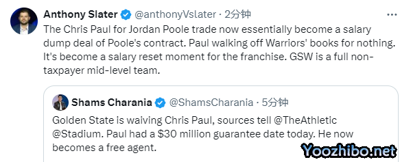 今年休赛期,勇士一直在兜售保罗,可即使他们把3000万美元的保障日期推迟一天,勇士仍旧未能通过交易送走保罗,勇士追求乔治失败,克莱-汤普森与勇士将结束合作,在如此情况下,最终勇士决定裁掉保罗从而腾出3000万美元的薪资空间,39岁保罗成为自由球员,他将寻求加盟其他球队。