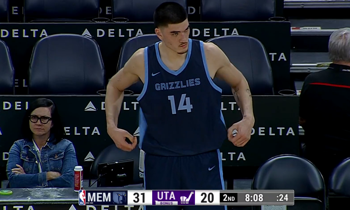 本场夏联比赛,灰熊和爵士打得十分精彩,开场没多久伊迪大帽乔治,之后凯斯勒大帽伊迪,不过爵士第一节17-27落后10分,第二节两队对攻并且打出火药味,半场打完灰熊52-41领先11分。