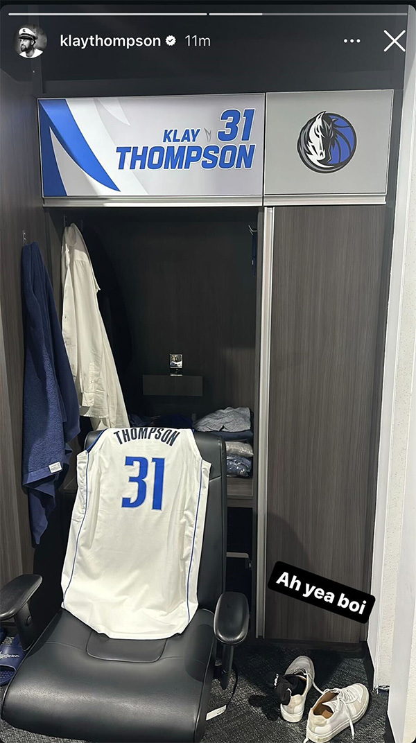 汤普森晒出自己的更衣柜,31号球衣搭在椅子上;追梦格林转发汤普森新球衣,直言:31号是一个很难对付的杀手。
