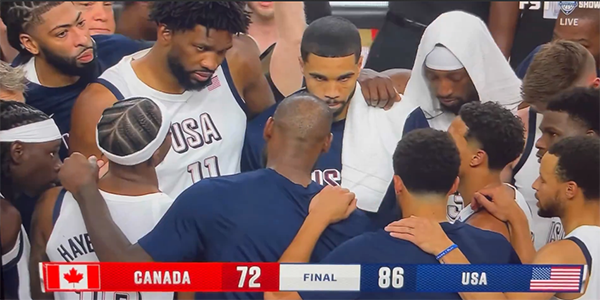 国男篮热身赛胜加拿大 詹库带队 詹姆斯赛后训话