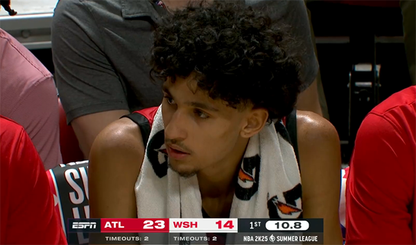 在状元和榜眼大战中,里萨谢开场突破打板命中,然后命中底角三分,不过之后几次投篮都打铁,第一节5投2中拿到5分1助攻,榜眼萨尔2投0中一分未得。