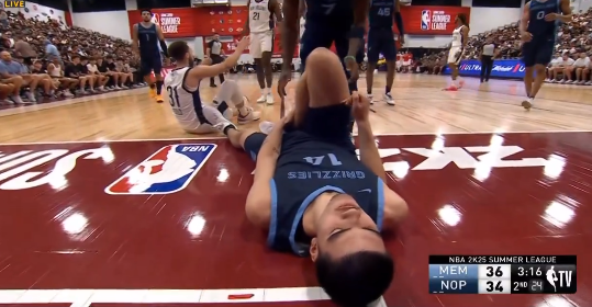 来源:直播车07-19 11:05直播车 北京时间7月19日,在夏联灰熊和鹈鹕的比赛中,今年9号秀扎克-伊迪回归首战就意外崴脚受伤,因伤退出比赛,两场伤了两次,想打却不能打,只能坐在场边观战。