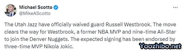 值得一提的是,2023年威少在湖人、爵士和森林狼三方交易中被送到爵士,威少和爵士达成买断,最终加盟快船。