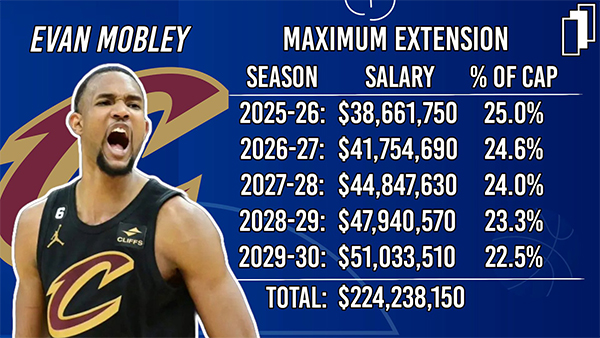 莫布利合同细节报道曝光——25-26赛季年薪3866万美元,26-27赛季4175万美元;27-28赛季年薪4484万美元;28-29赛季4797万 美元和29-30赛季5103万美元。