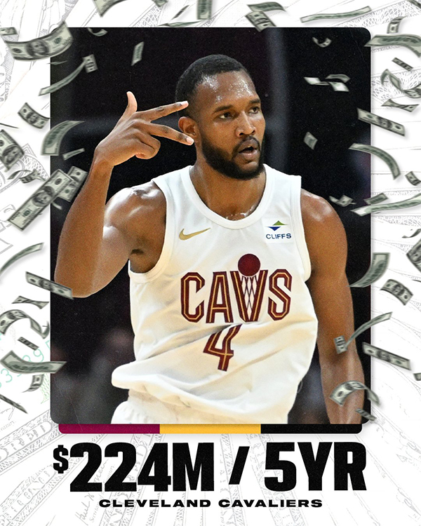 来源:直播车07-21 12:07直播车讯 北京时间7月21日,据ESPN名记woj报道,经纪人透露,克利夫兰骑士队前锋埃文-莫布利已经同意续签一份为期五年、最高价值 2.24 亿美元的提前续约合同,这份合同的价值最高可能达到 2.69 亿美元。