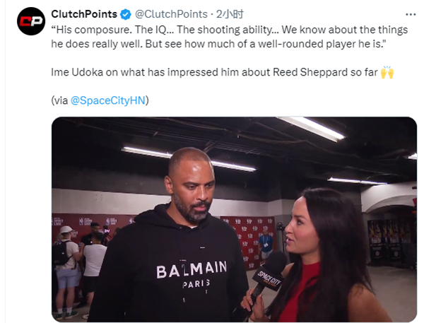 相比于状元里萨谢和榜眼萨尔,探花谢泼德的夏联表现更好,展现不俗的得分能力、组织能力以及高球商;今日火箭主帅乌度卡接受采访时盛赞谢泼德是天生的领袖。