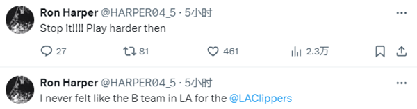 NBA名宿罗恩-哈珀回击乔治:别说了,打得硬一点吧,我从未来没有感觉快船是洛杉矶二队;哈珀是公牛96-98时期三连冠的成员,2000年和2001年跟随湖人又夺两冠。
