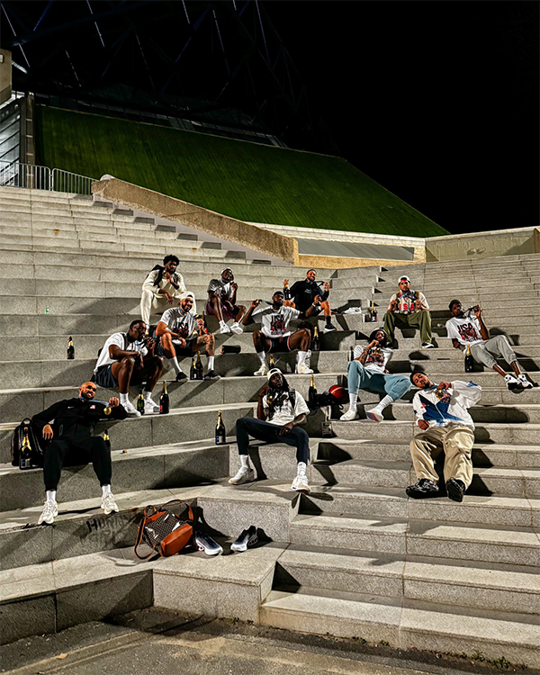 詹姆斯先是把推特头像换成美国男篮全队拿着金牌和香槟,坐在巴黎户外的台阶上合影留念,这里也是美国男篮庆祝夺冠的一个地点。