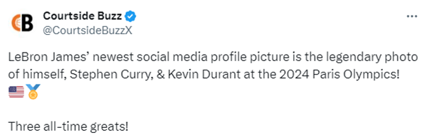 詹杜库奥运之旅成追忆 詹姆斯换头像引关注