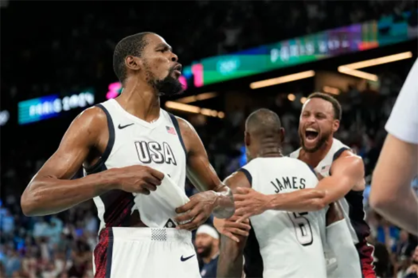 2024年巴黎奥运会,詹姆斯、杜兰特和库里三人首次联手参加奥运会,他们带领美国队以全胜的战绩夺得金牌,詹杜库都在奥运赛场上大秀自己的招牌动作,詹姆斯一直稳定输出,杜兰特仍旧是FIBA大杀器,库里凭借在半决赛和决赛上的大爆发备受瞩目。