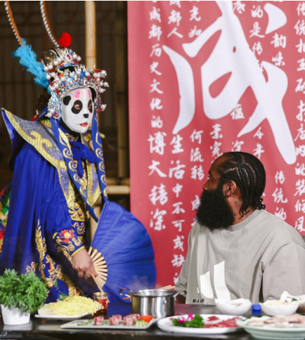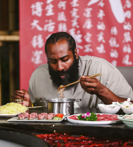 哈登连续晒出20张中国行的照片——哈登张开双臂与球迷的合影,哈登为球迷签名以及球迷给他戴上铜钱,还有哈登品尝中国美食的画面,成都行吃火锅,辣的满脸通红仍狂吃火锅,杭州行品尝西湖龙井。