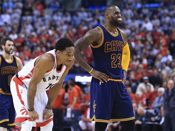 德罗赞与詹姆斯季后赛交手的数据——德罗赞场均上场36.6分钟,得到20.6分3.4助攻3.6篮板;詹姆斯场均上场39.4分钟,轰下31.1分8.4篮板7.6助攻1.7抢断1盖帽。