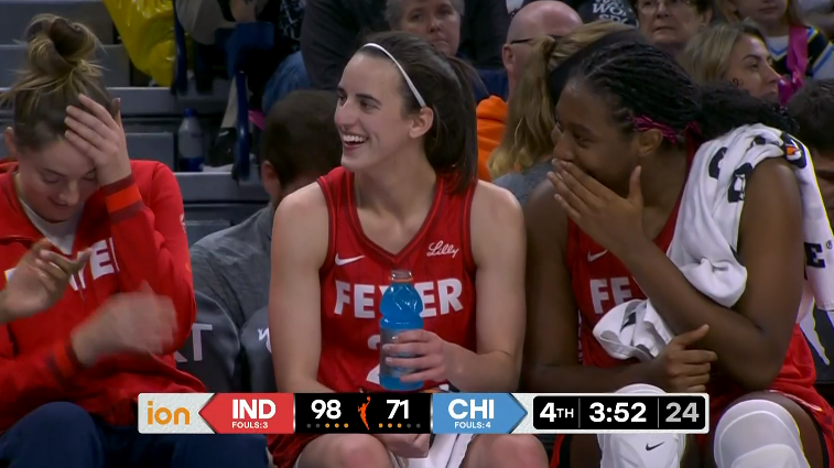 来源:直播车08-31 13:03直播车讯 北京时间8月31日,WNBA常规赛印第安纳狂热100-81大胜芝加哥天空,状元郎凯特琳-克拉克全场出战32分钟,14投8中、三分9中5、罚球11中10轰下31分12助攻4篮板1抢断,正负值高达+23,提前打卡下班,坐在替补席满脸笑容十分开心。