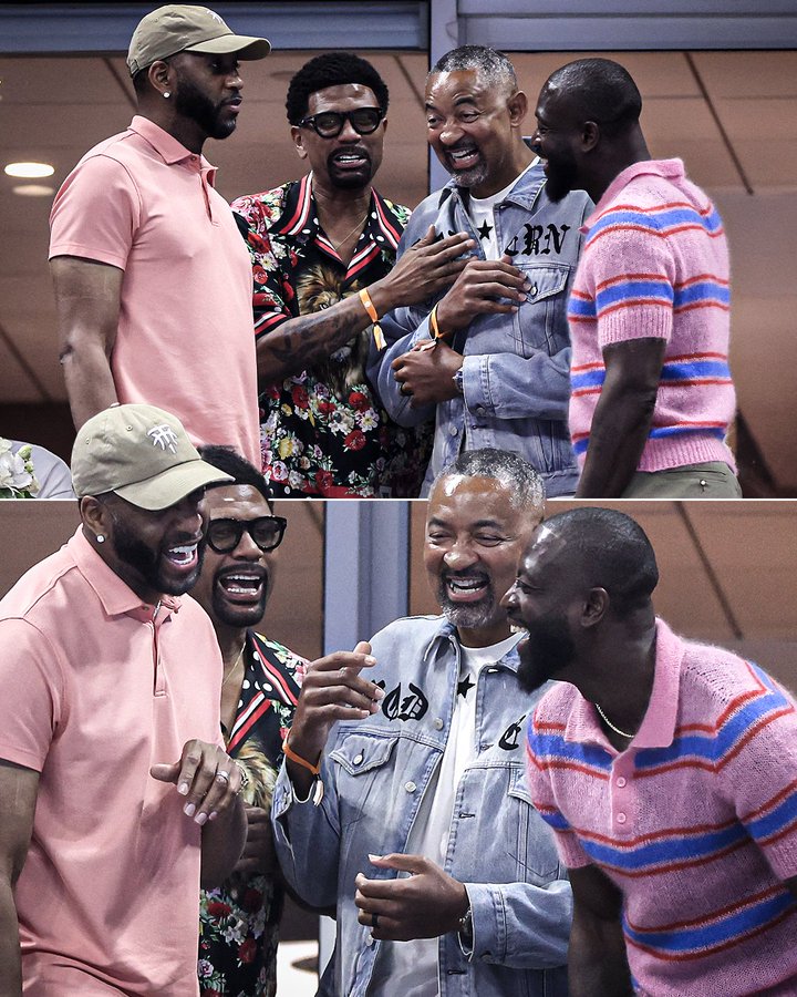 来源:直播车09-05 11:28直播车讯 北京时间9月5日,NBA四大名宿罕见同框亮相,麦迪、韦德、霍二叔和杰伦-罗斯现身美网公开赛,他们四人尽情热聊,麦迪韦德等人都咧嘴大笑。