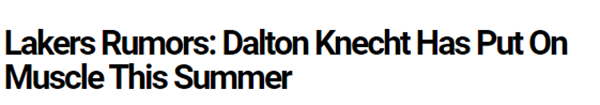 湖人记者Mike Bresnahan报道,湖人17号秀克内克特在休赛期已经进行了一些增肌,他现在变得更大只,作为一个后卫他在篮下的终结已经很不错了,但现在他比几个月前我们看到的更强壮更出色,那时他还是个大学生。