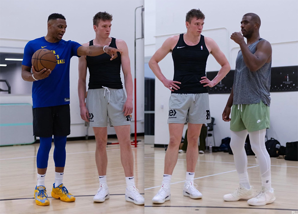今夏克内克特积极备战新赛季,不仅在球场上挥汗苦练投篮,而且在健身房中撸铁苦练,更是获得NBA历史三双王威少和NBA“控卫之神”克里斯-保罗的亲身授课。