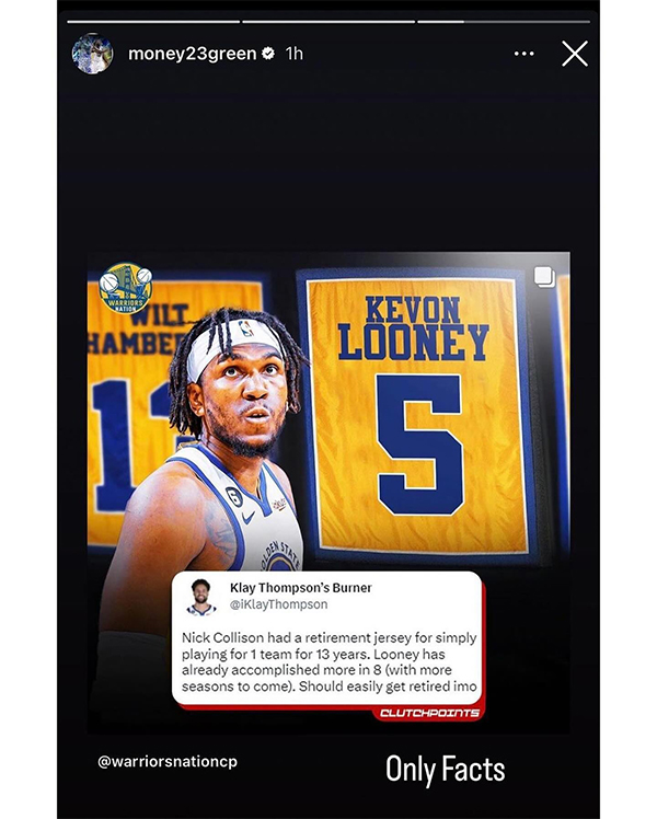 在勇士体系内,卢尼是一名干脏活累活的蓝领,未来能否退役5号球衣是一个未知数,但库里的30号、汤普森的11号和追梦格林的23号预计都会被勇士退役。