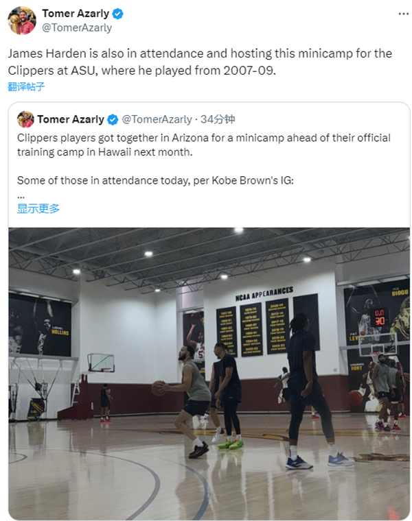 哈登组织迷你训练营,有球迷爆粗吐槽小卡没来,Tomer Azarly进一步报道,并不是快船全队都来了,但有些球员可能晚点加入,还不确定。
