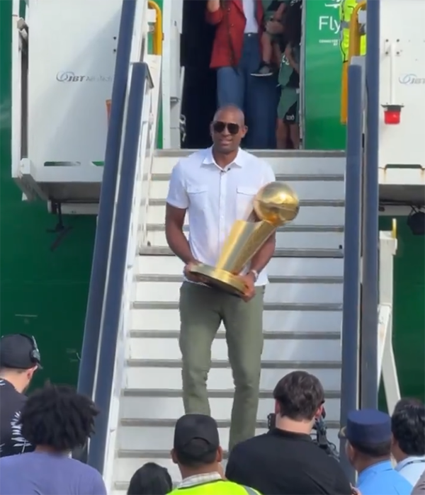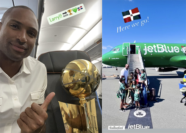NBA官方晒出霍福德把总冠军奖杯带到多米尼加共和国的画面,配文写道:第一位夺冠的多米尼加人,艾尔-霍福德将展开一段特殊的旅程!