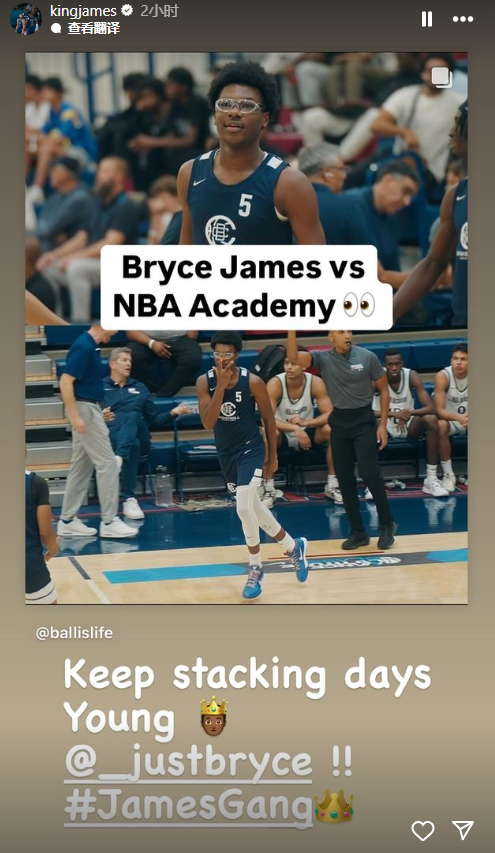布莱斯17岁展风采,詹姆斯赞小儿子为年轻国王