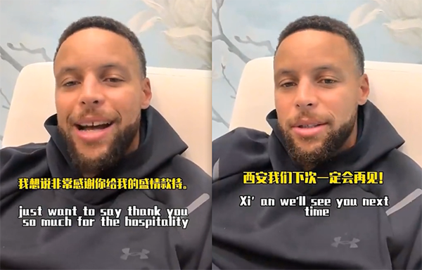 库里用中文说“谢谢”之后还表示:西安,我们下次一定会再见。
