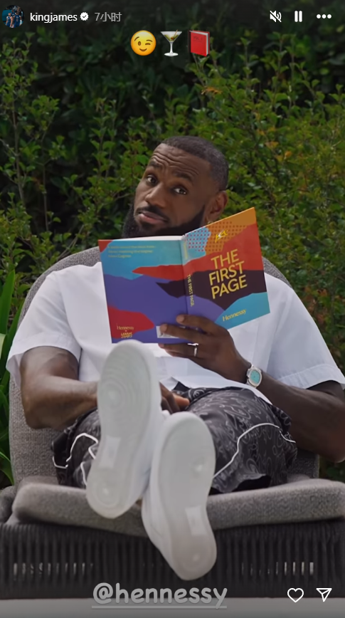 今日詹姆斯晒出自己坐在泳池边上,一边看书一边喝红酒的画面,配上:笑脸+红酒+书本表情;老詹的表情反应十分有趣,值得一提的是,詹姆斯所读的这本书名叫《The First Page(第一页)》。