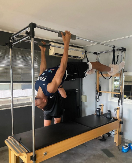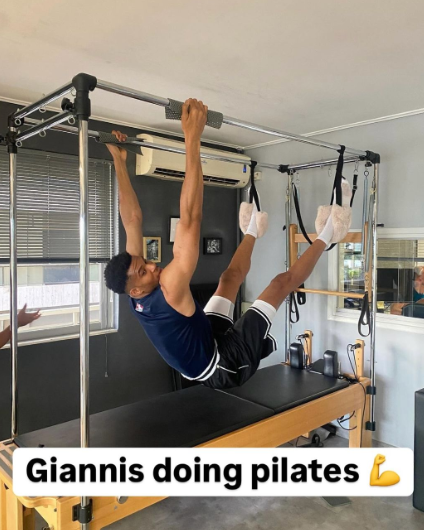 字母哥苦练普拉提曝光,美女训练师助力,空中倒挂太拼命