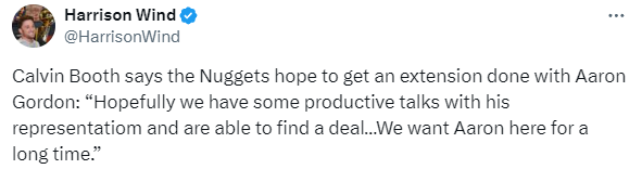 在媒体日上,谈到阿隆-戈登续约问题,布斯表示掘金队希望与登完成续约:希望我们能与他的代表进行一些富有成效的对话谈判,并能够达成协议,我们希望阿隆在这里待很长时间。