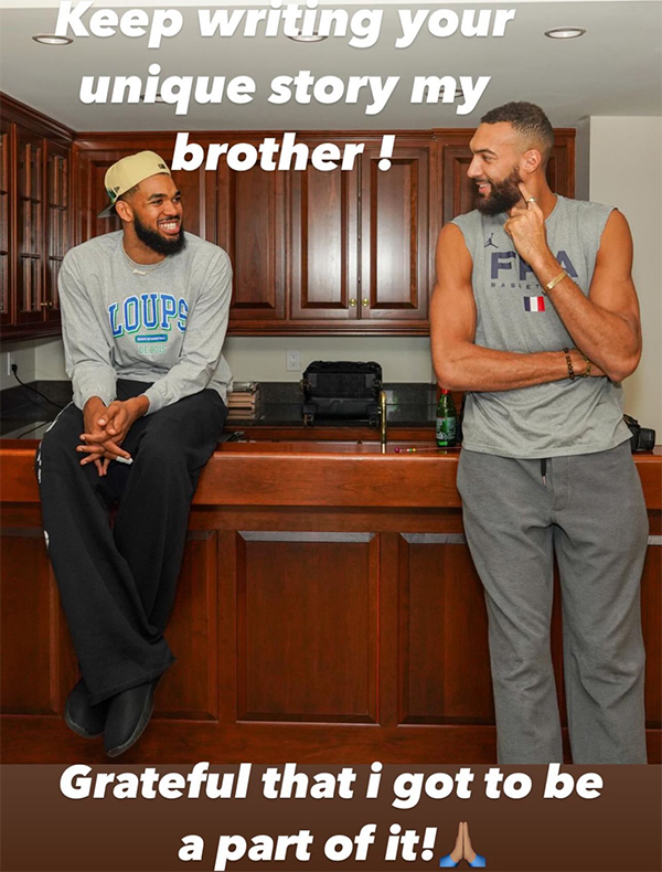 戈贝尔已经提前向唐斯告别:兄弟,继续书写你独一无二的故事吧!我很感激能成为其中的一部分。