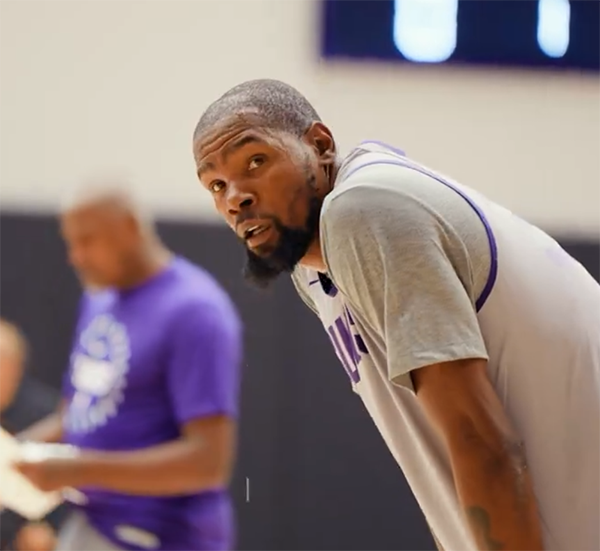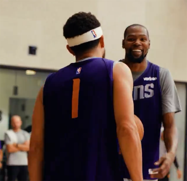 太阳训练营开场:杜兰特汗湿仍笑,布克比尔发力防守