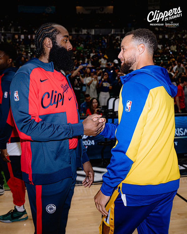 赛前库里入场时球迷为他欢呼呐喊,哈登也呼喊库里的名字,另外库里和哈登拥抱以及开心热聊,如此画面太暖心。