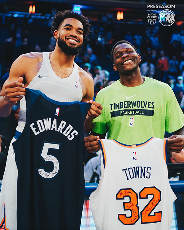 谈到与爱德华兹互相交换球衣,唐斯表示:这非常特别,从第一天起,我就只想看到他在这个联盟中打出亮眼的表现、发挥自己的潜力并超越自我,看到他现在的发展轨迹让我感到自豪。