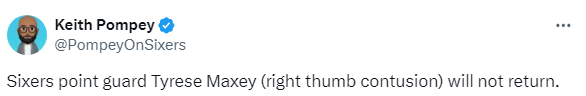 76 人再遇伤病困境,马克西拇指伤退,恩比德亦在养伤
