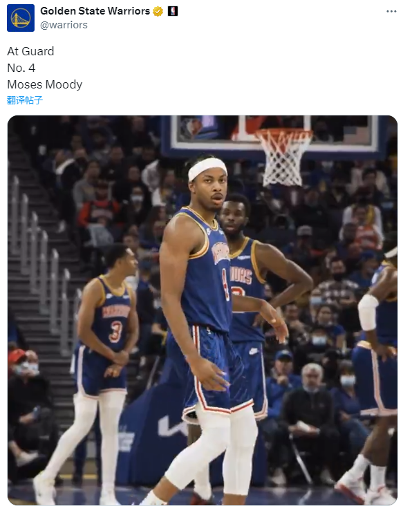 穆迪是在2021年被勇士用第14号签选中的,生涯至今一直为勇士效力,三年出战181场常规赛,场均上场14.3分钟拿到5.9分2.1篮板,2022年跟随勇士夺得总冠军。