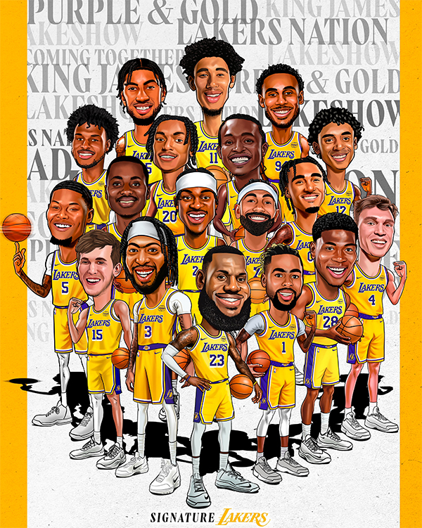 湖人漫画版全员亮相,詹姆斯 C 位引领,浓眉、拉塞尔分立两侧