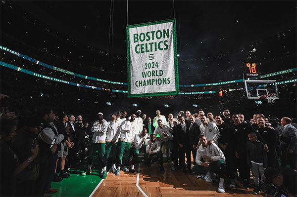 揭幕战开打赛前,绿军正式举办总冠军戒指颁奖仪式,皮尔斯、雷-阿伦以及加内特等名宿都来到现场,众球员领取戒指时塔图姆最后一个登场,领戒指后塔图姆发表演讲,感谢球迷后言简意赅地表示:让我们再夺一冠。